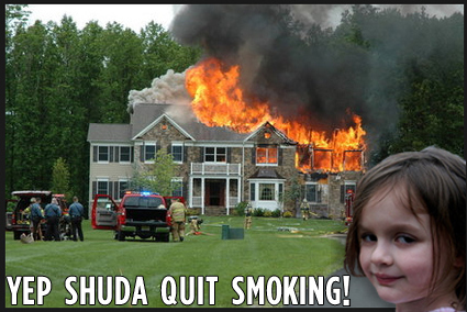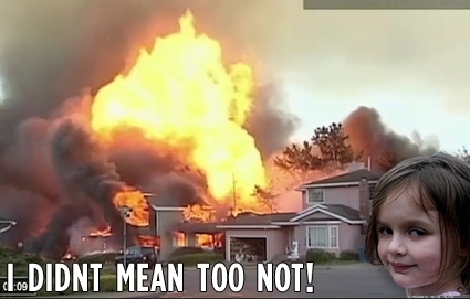 A imagem não é nova e voltou a circular na 3ª semana de abril de 2012, no Facebook e no Twitter. Na foto, uma casa pegando fogo e uma garotinha olhando para a câmera com um sorriso cínico no rosto e, em algumas versões, os dizeres: